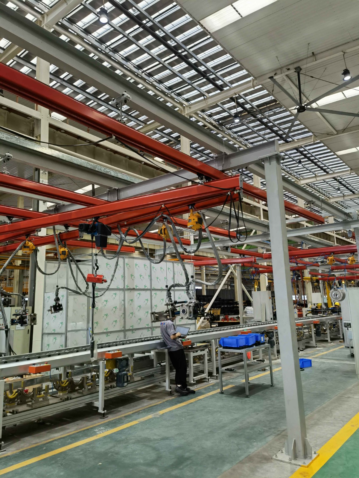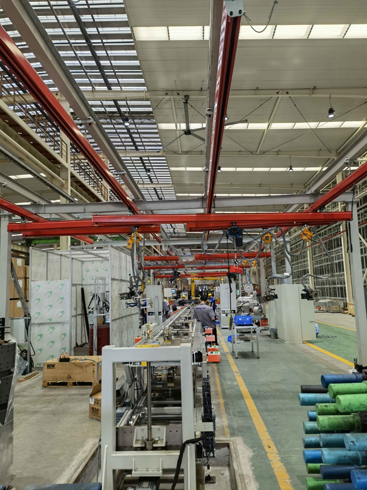 KBK起重機(jī)標(biāo)準(zhǔn)組件。由懸掛裝置、軌道、道岔、行走小車(chē)、電動(dòng)葫蘆、移動(dòng)供電裝置(滑線(xiàn))以及控制裝置等組件組合而成,起升裝置主要采用環(huán)鏈電動(dòng)葫蘆,也可吊掛一些機(jī)械手或焊槍之類(lèi),作為工具滑軌使用,起重量一般2000kg。只需簡(jiǎn)單地懸掛在廠(chǎng)房頂板或梁架上便可實(shí)現(xiàn)物料的空中直接輸送,因此被廣泛地應(yīng)用于各行各業(yè)的物料輸送環(huán)節(jié)或系統(tǒng)。