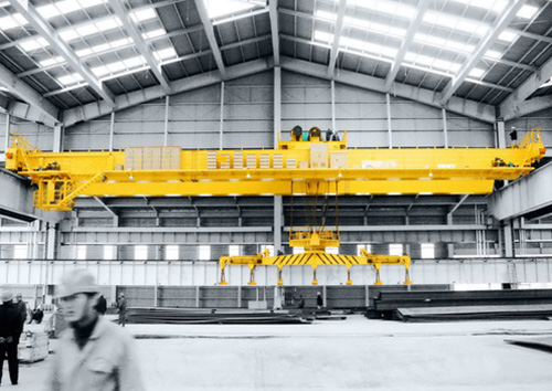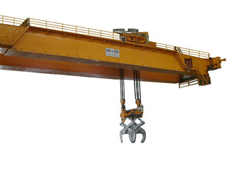 本起重機(jī)用于鋼廠、船廠、港口、堆場和倉儲(chǔ)等室內(nèi)或露天的固定跨間,裝卸及搬運(yùn)鋼板板坯、型材等物料。